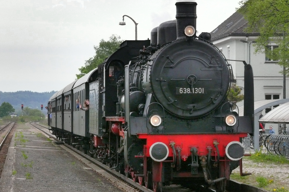 Zu einem Bahntag am Bahnhof Simbach hatte die Südostbayernbahn geladen. Neben einer Fahrzeugausstellung gab es auch Sonderfahrten mit einer österreichischen 638 zwischen Simbach und Mühldorf. Das Bild zeigt den Sonderzug im Bahnhof Töging.
